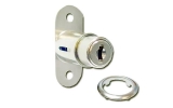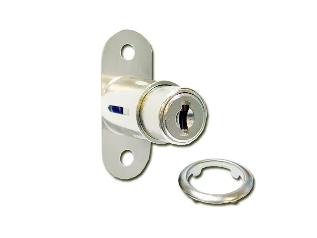 506-12 Замок-кнопка для раздвижных дверец фирмы ARMSTRONG, цилиндр d19 x 22 мм, система с одинаковыми,е ключами. Комплектация с одинаковыми ключами обеспечивает ТОЛЬКО 1 вариант ключа № 131 на всю партию замков (все ключи - одинаковые!!!), таким образом ключ от любого замка открывает все остальные замки. Крепится на наружную створку дверцы. Закрывается нажатием на цилиндр (ключ необходимо предварительно вынуть из замка!), при этом из замка выдвигается штырь-фиксатор, входящий в зацепление со второй раздвижной створкой дверцы (за кромку дверцы либо через специальное отверстие). При повороте ключа кнопка освобождается, штырь утапливается в тело замка, освобождая дверцы. Номер выбит на ключе и на замке.