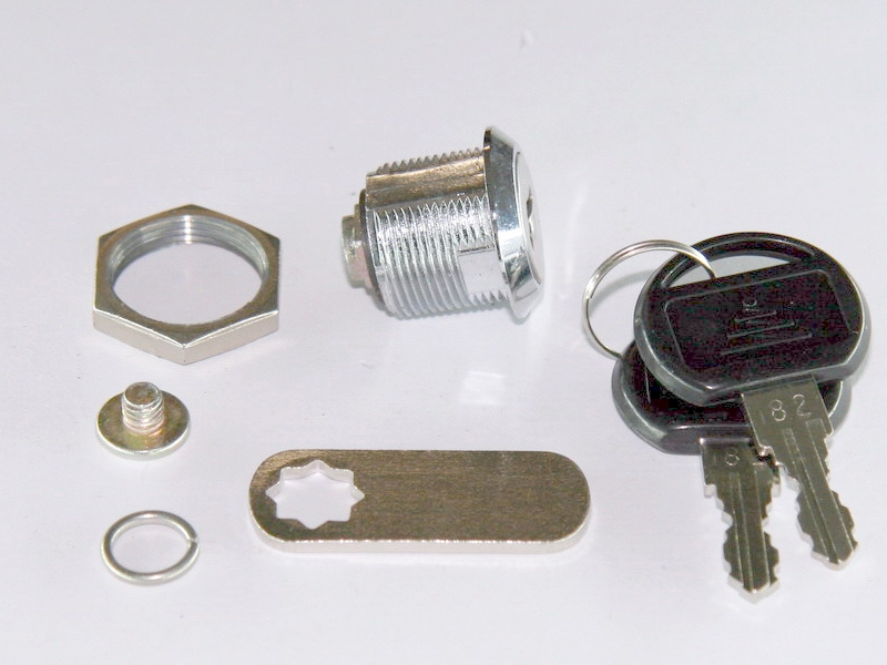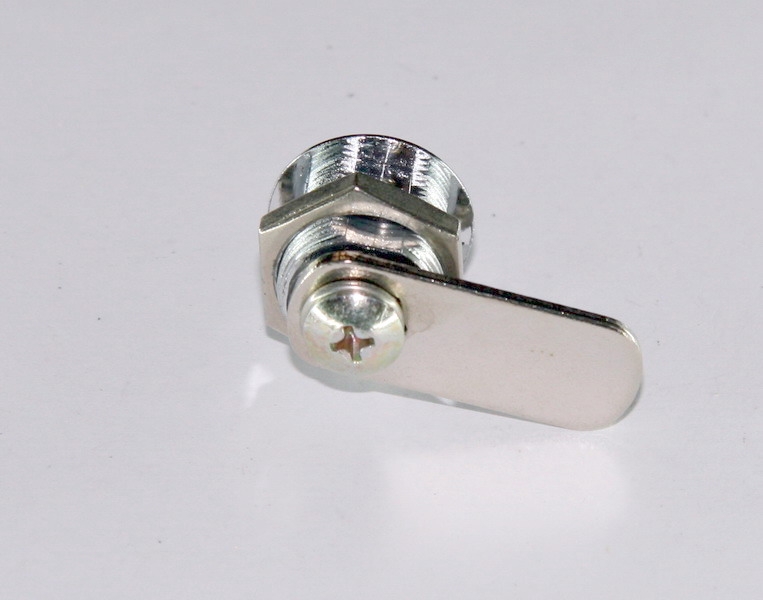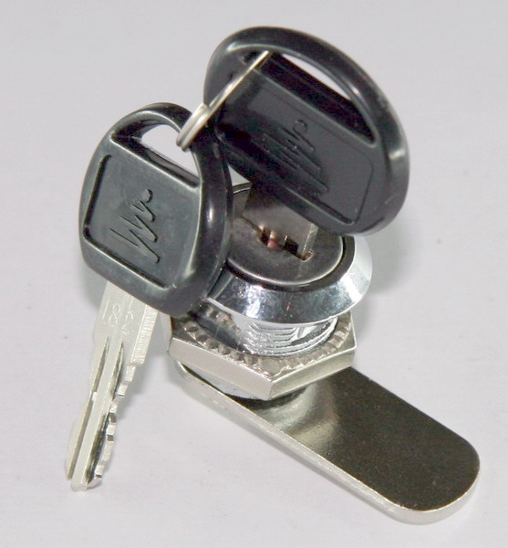 103-16 Камлок, d19 x16 мм. Замок для металлической мебели фирмы GENERAL. Крепится к фасаду гайкой. Отверстие в фасаде - НЕКРУГЛОЙ формы, что не позволяет корпусу замка вращаться. Угол поворота задвижки - 90 град. Конструкция обеспечивает 250 вариантов ключа, номер выбит только на ключе.