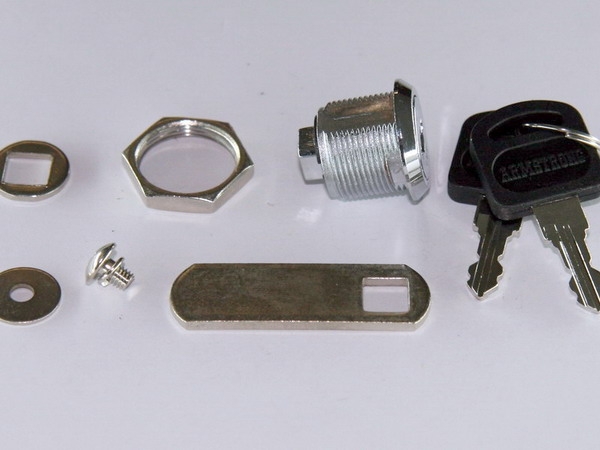 505-16 Камлок, d19x16мм. Классический замок для металлической мебели фирмы ARMSTRONG. Комплектация с одинаковыми ключами обеспечивает ТОЛЬКО 1 вариант ключа № 131 на всю партию замков (все ключи - одинаковые!!!), таким образом ключ от любого замка открывает все остальные замки. Крепится к фасаду гайкой. Отверстие в фасаде - НЕКРУГЛОЙ формы, что не позволяет корпусу замка вращаться. Угол поворота задвижки - 90 град. Номер выбит на ключе и на замке.