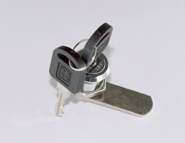 Комплектность: - замок 1 шт - задвижка CAMS47 1 шт - шайбы 2 шт - винт М4 х 8мм 1 шт - ключи 2 шт - масса комплекта 58 г.